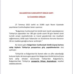 Bulgaristan Cumhuriyeti Kimlik Kartı ile Ülkemize Girişler Hazel Yaz2022-10-15T22:53:27+00:00 Bu gönderiyi paylaş Facebook Twitter LinkedIn Google + E-posta